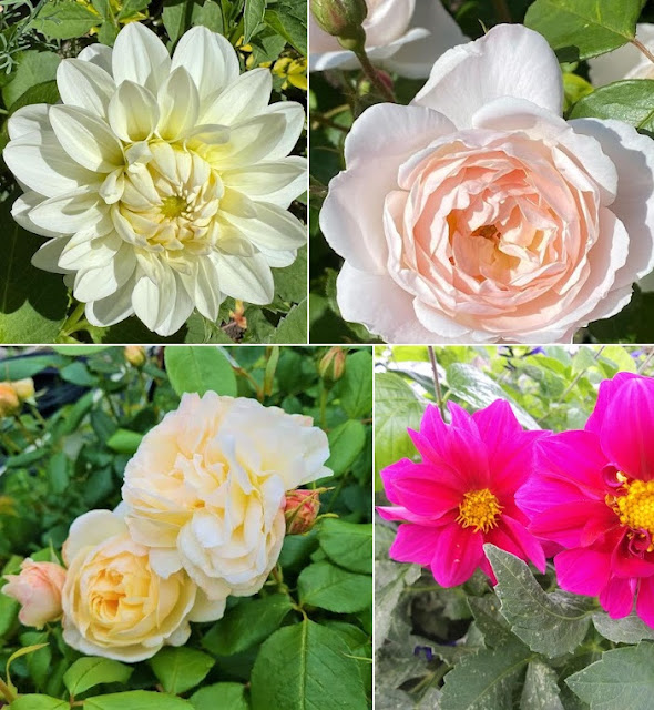 In particular doing well this year were the roses, delphiniums, saliva, zinnias, black eyed Susan's, dahlias and the potted garden: